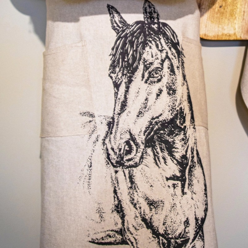 Die Leinenschürze mit Pferdemotiv ist ein wunderschönes Küchenaccessoire.