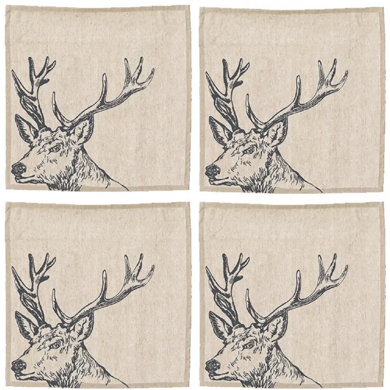 Die Stoffservietten mit Hirschmotiven eignen sich sowohl für den täglichen Gebrauch, als auch für eine schöne Gästetafel. Eine perfekte Tafeldekoration für ein elegantes Landhaus Ambiente.