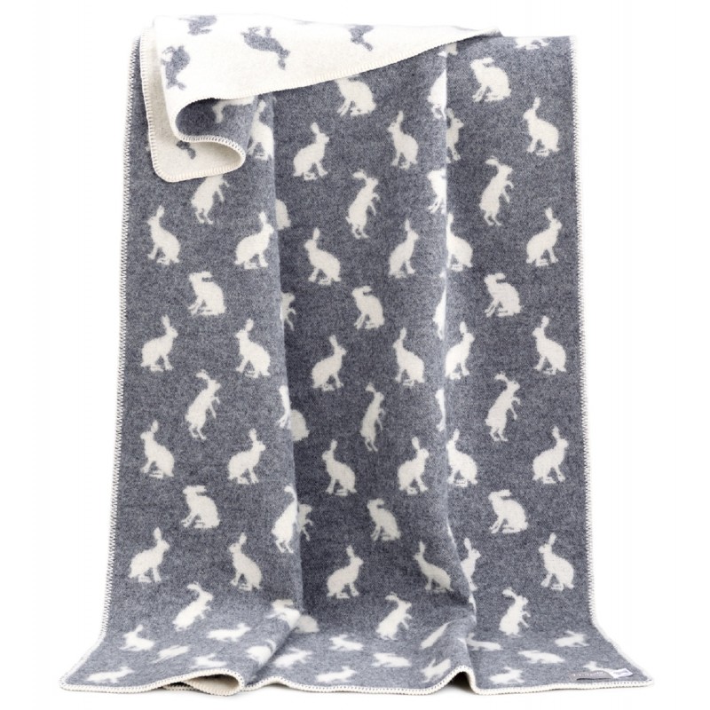 Wollplaid Hasen (Wendedecke) / Wolldecke mit Hasenmotiv / Hasen Decke