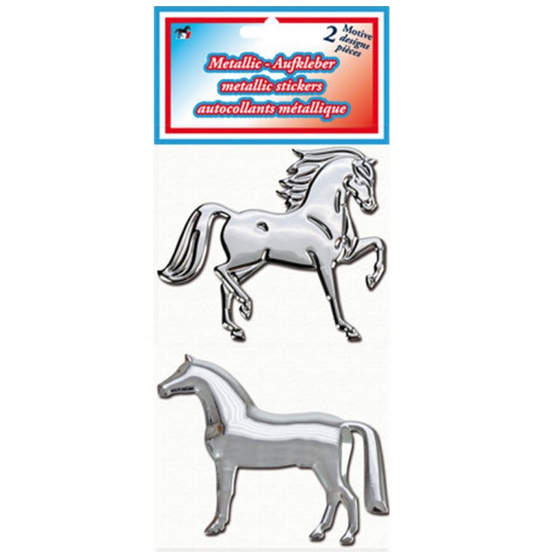 Silberfarbener 3D-Pferdeaufkleber im Metall Look