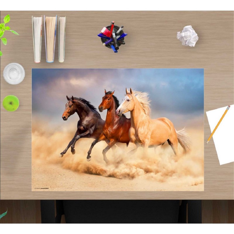 Hochwertige, rutschfeste Schreibtischunterlage mit einem wunderschönen Foto eines Pferdetrios