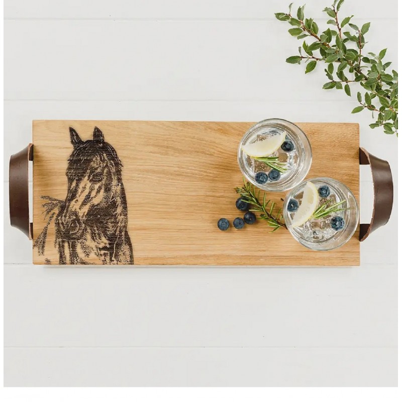 Deko Tablett mit Pferdemotiv aus Eichenholz / Holztablett Pferd / Käsebrett Pferdemotiv / Servierbrett Pferd / Pferde Tablett