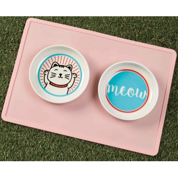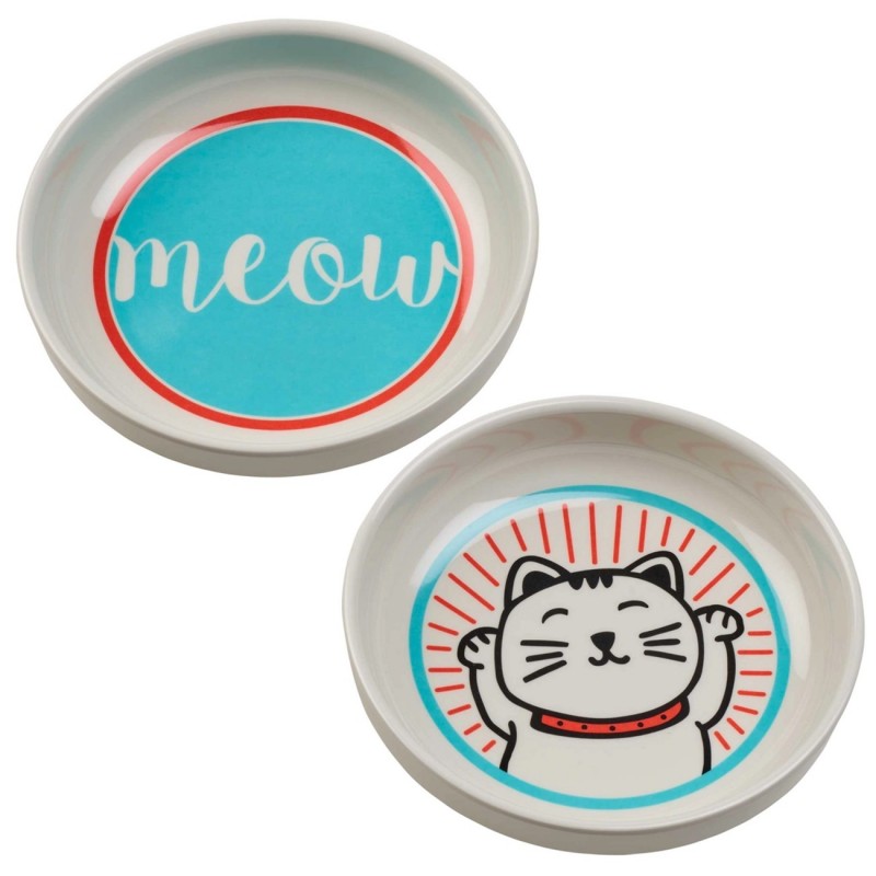 2er Set Katzennäpfe Meow, Kleines Futterschüssel- & Wasserschüssel-Set für Katzen / Näpfe für Katzen