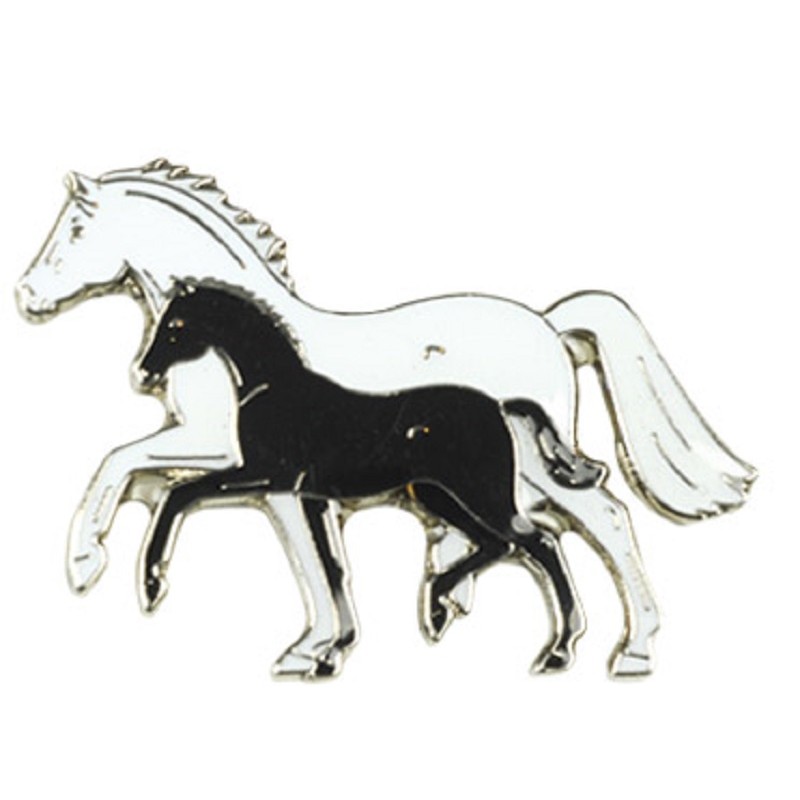- Pferdepin / Reiterpin "Schimmelstute mit Fohlen", s/w