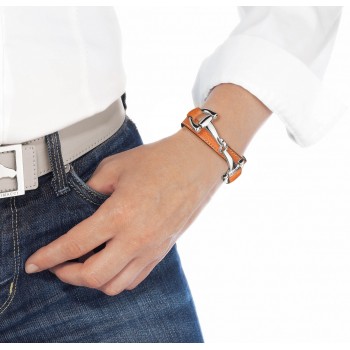 • Pferde Armband aus Kalbsleder in Orange mit Trensenverschluss aus silberfarbenem Edelstahl
