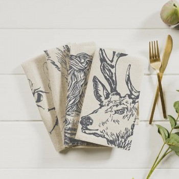 Die Stoffservietten mit Hirschmotiven eignen sich sowohl für den täglichen Gebrauch, als auch für eine schöne Gästetafel. Eine perfekte Tafeldekoration für ein elegantes Landhaus Ambiente.