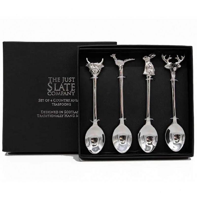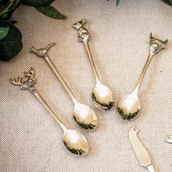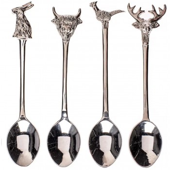 Set mit 4 Edelstahlöffeln mit wunderschönen Tiermotiven