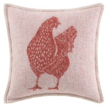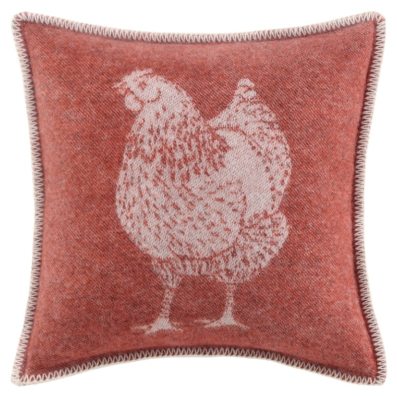 Wollkissen in warmem Terracotta-Ton mit hübschem Hühnermotiv